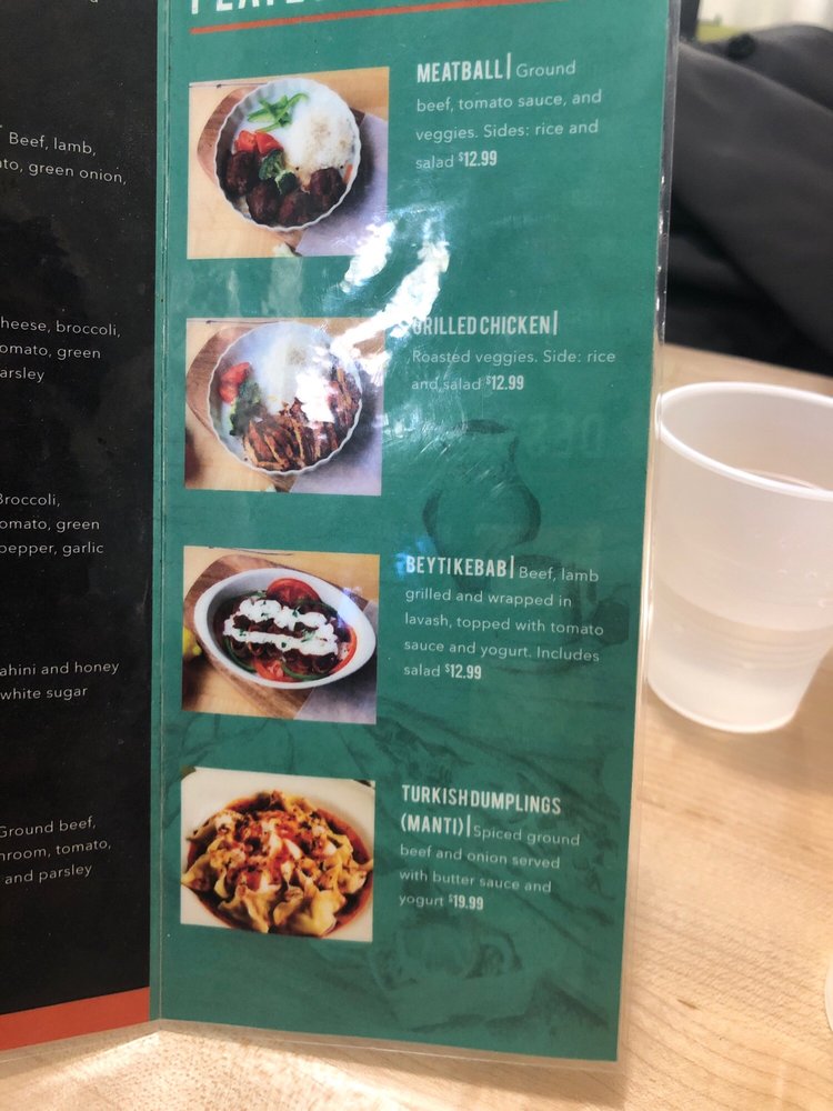 Ground beef stuffed Turkish dumplings served with yogurt, tomato sauce and chili oil.