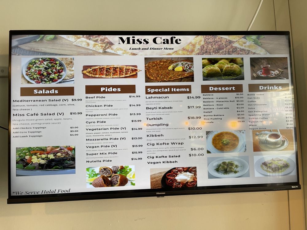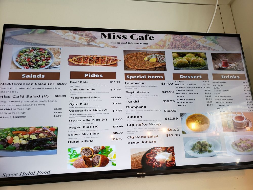 Located in Seattle, Miss Cafe offers a taste of Istanbul with its diverse Mediterranean and Turkish menu. This women-owned cafe is known for its warm atmosphere, excellent service, and flavorful dishes. With options for vegans, vegetarians, and meat-lovers, Miss Cafe caters to all dietary preferences. Customers rave about the Turkish Pide, especially the Beef and Chicken varieties, as well as the fresh salads and Turkish breakfast options like Veggie Shakshuka and Chicken Pide. The outdoor seating is perfect for enjoying a meal while soaking up the lively city atmosphere. Turkish tea and desserts like Künefe add a delightful finish to any meal. Whether you're a regular or a first-time visitor, Miss Cafe is a gem worth exploring for a taste of authentic Turkish cuisine in the heart of Seattle.